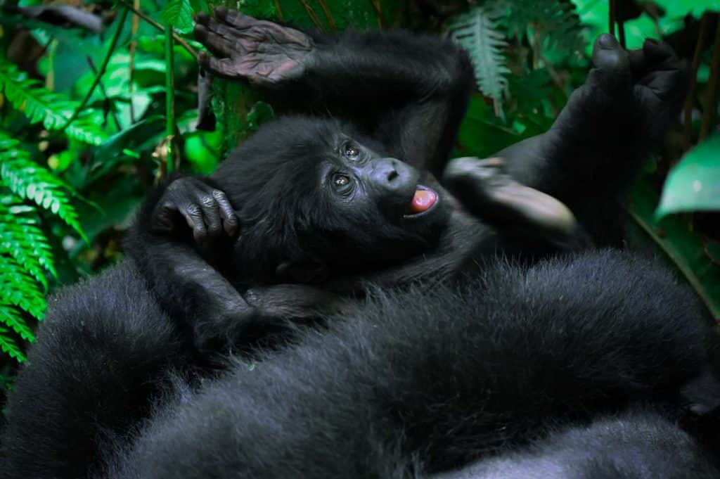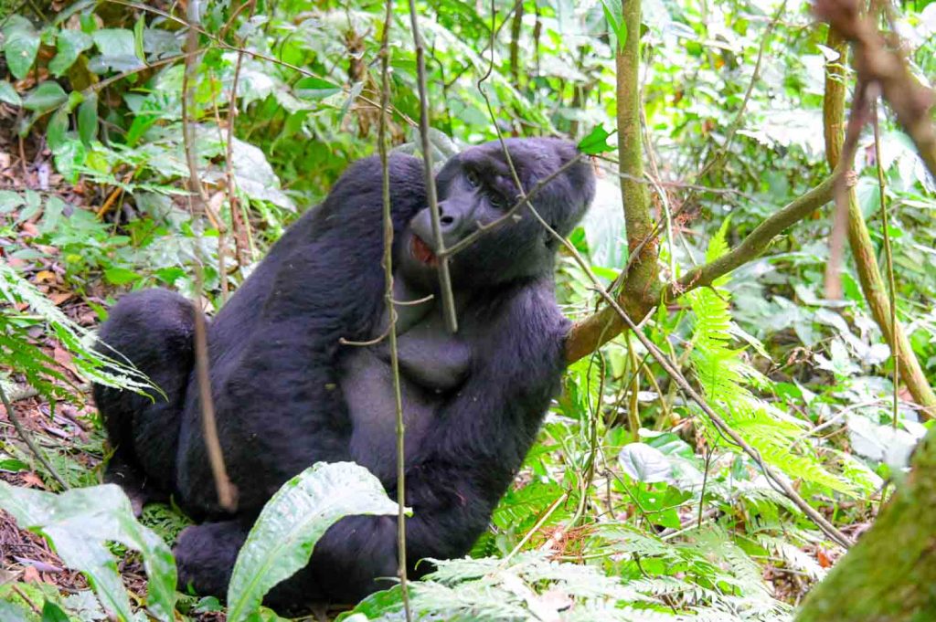 The Mountain gorillas ignore the tourist groups most of the time. That means, they would either be resting, or munching on the greens around them.